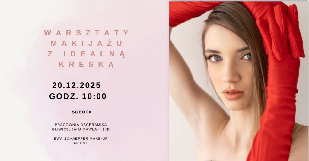 Warsztaty Makijażu z Kreską Chcesz w końcu opanować idealną kreskę? Zapraszam na wyjątkowe warsztaty, podczas których krok po kroku nauczysz się, jak tworzyć perfekcyjną linię – niezależnie od kształtu oka i poziomu doświadczenia. W programie: • dobór odpowiedniego produktu (eyeliner, żel, kredka) • nauka kilku technik rysowania kreski – klasycznej i soft liner • jak poprawiać błędy, aby nie zniszczyć całego makijażu • jak poprawnie przygotować cerę przed nałożeniem makijażu • jak dobrać idealny podkład • jak poprawnie wykonturować twarz techniką na mokro/na sucho • nauka klejenia kępek rzęs Dla kogo? Dla osób początkujących i dla tych, które chcą udoskonalić swoją technikę. Nie musisz mieć doświadczenia – wszystko zrobimy razem, krok po kroku. Pierwsza część będzie pokazowa na modelce. W drugiej części warsztatów makijaż wykonujesz na sobie. Co zapewniamy? wszystkie niezbędne kosmetyki i akcesoria – do dyspozycji będą: paletki z cieniami, kosmetyki do konturowania, róże i rozświetlacze, podkłady, pudry, tusze, korektory, pomadki indywidualne wskazówki materiały do domu z opisem technik Proszę o zabranie ze sobą pędzli do makijażu, w szczególności pędzelka skośnego do brwi. Prowadząca warsztaty: Ewa Schaeffer – Make Up Artist Grupa max: 8 osób Termin: 20.12.2025 godz. 10:00 Miejsce: Gliwice, Jana Pawła 14d Pracownia dsceramika Czas trwania: 3-4 godziny Inwestycja: 300 zł Potwierdzeniem zapisania się i uczestnictwa w warsztatach jest wpłata zaliczki 50zł, a pozostała kwota wpłacana jest w dniu warsztatów. Dołącz i przekonaj się, że idealna kreska jest w zasięgu ręki! KLIKNIJ I ZAREZEWUJ TERMIN. Zapraszamy Ewa i Dagmara