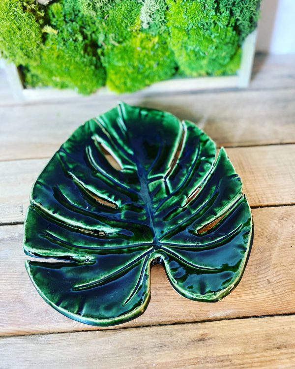 Ręcznie wykonana ozdobna patera o kształcie liścia monstery.