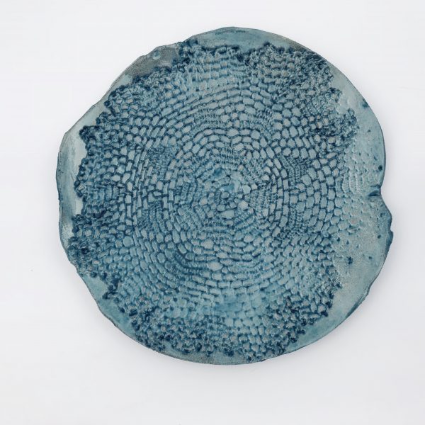 Niepowtarzalna patera ręcznie robiona z szarej gliny o niereguralnym kształcie.