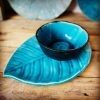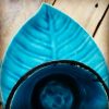 Talerz/patera ceramiczna zrobiona ręcznie z białej gliny w kształcie liścia oraz miseczka.